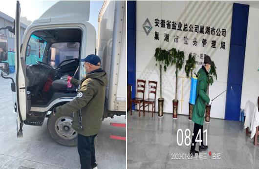 蚌埠公司、巢湖公司對配送車輛、辦公區(qū)進行消毒。
