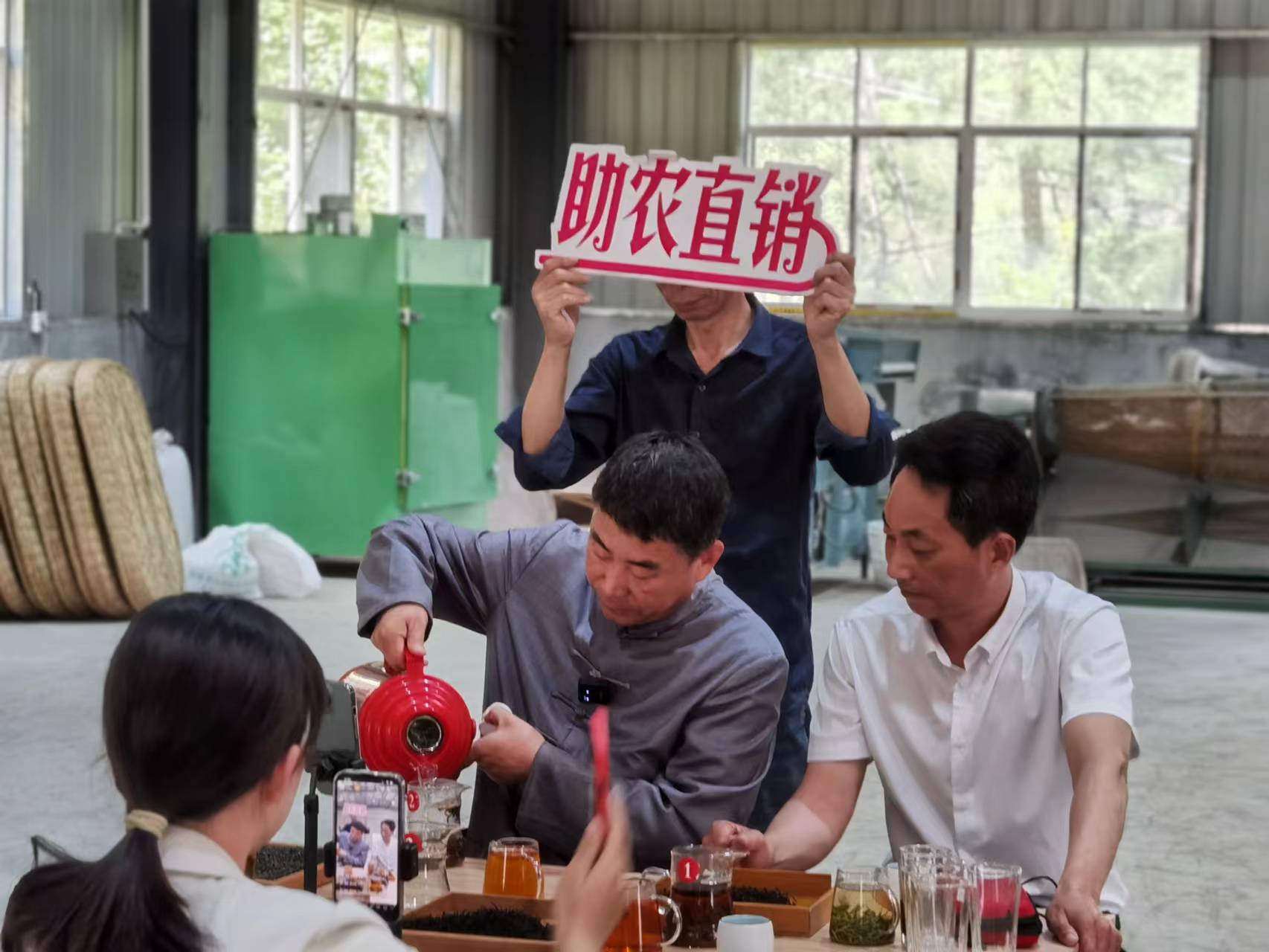 5月7日上午,安徽天方茶葉集團(tuán)董事長鄭孝和先生一行受邀來到西河村集體茶廠云谷茶廠,介紹了天方茶葉集團(tuán)助農(nóng)網(wǎng)上直銷茶葉方法和經(jīng)驗(yàn),并對(duì)云谷茶廠網(wǎng)上直銷茶葉進(jìn)行了培訓(xùn)和指導(dǎo)。上午11點(diǎn),云谷茶廠室內(nèi)抖音直播銷售平臺(tái)正式上線,西河村駐村第一書記汪令富、村委負(fù)責(zé)人李運(yùn)生同天方集團(tuán)董事長鄭孝和帶著西河村生產(chǎn)的江北高山紅茶—天柱紅走進(jìn)直播間,向網(wǎng)友們在線介紹了天柱紅的種植、采摘、品質(zhì)鑒別,經(jīng)過一個(gè)多小時(shí)的直播推介,銷售天柱紅紅茶近六千元。下午2點(diǎn),網(wǎng)上直播助農(nóng)直銷茶葉活動(dòng)改在茶園進(jìn)行,通過實(shí)地高山茶園宣傳推介云谷茶廠生產(chǎn)的優(yōu)質(zhì)天柱紅紅茶和天柱玄月綠茶。